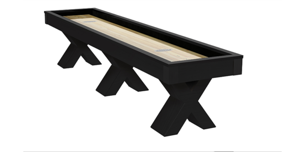 The Encore Shuffleboard Table is made from Solid Wood and features flat panel aprons and unique “X” style legs. All Olhausen Shuffleboards are hand-crafted at our 250,000 sq. ft. manufacturing facility in Portland, TN.